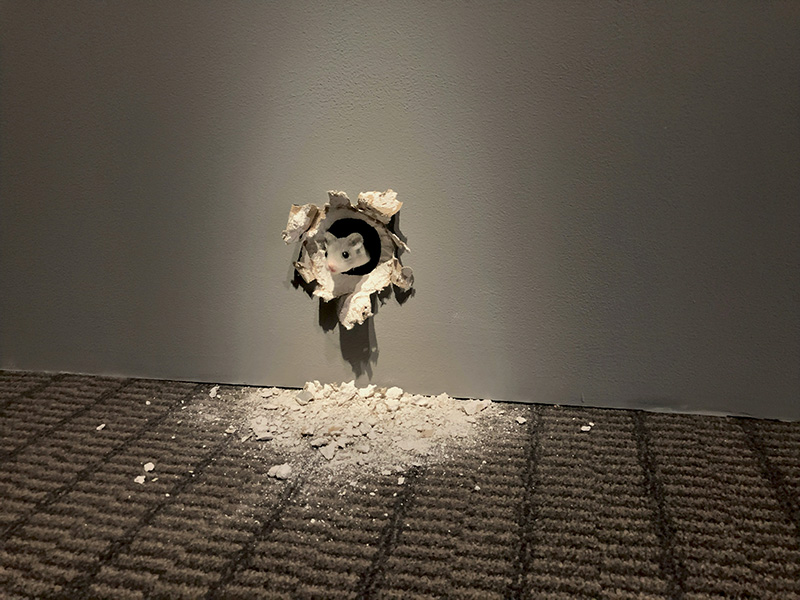 ポーラ美術館では白いネズミ2匹が壁に空いた穴から顔を出して会話していた。