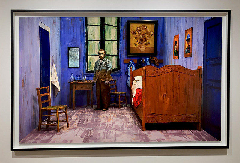 ゴッホの作品「アルルの寝室」を再現し、その中に佇む森村さんはゴッホそのもの!
