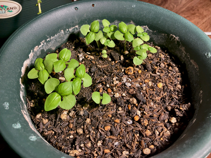 4月の下旬にバジルの種をまいてみる。画像は5月中旬のもので、少し大きくなっているよね。